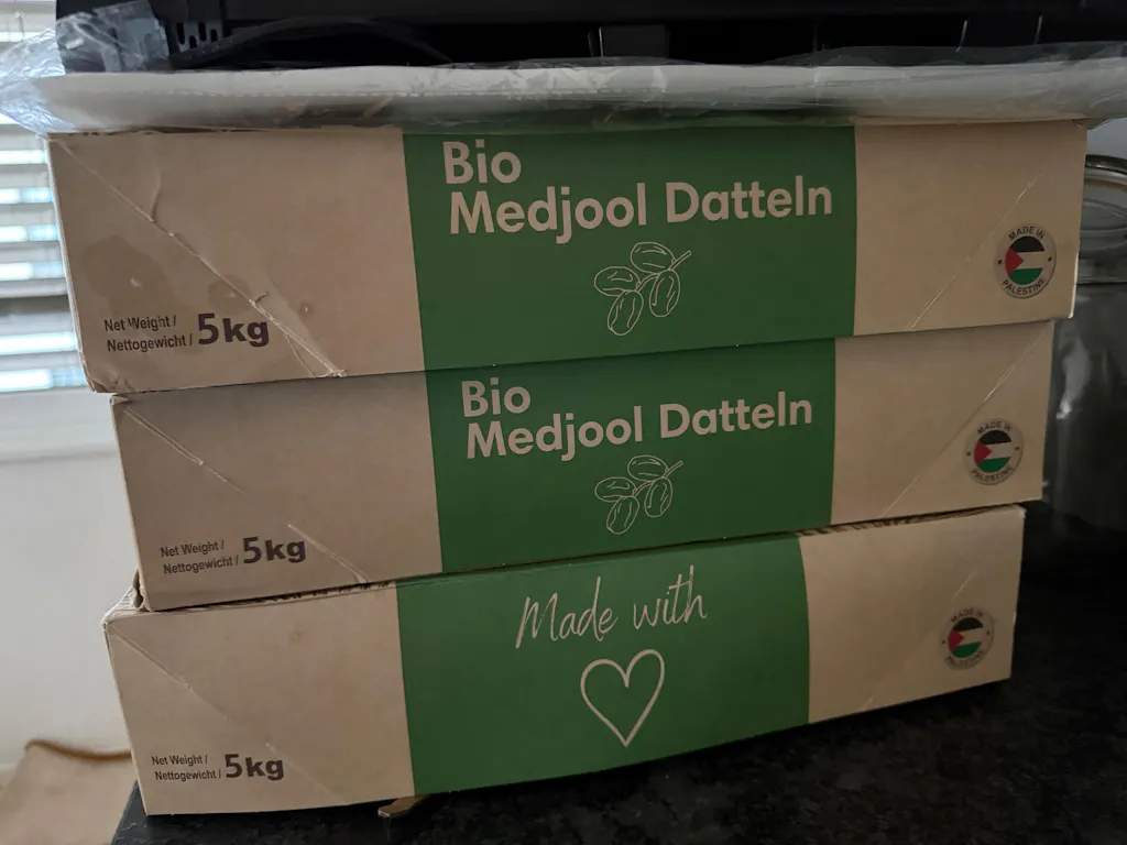 Unser Partner ist Rift Valley, ein palästinensisches Unternehmen, das sich auf den nachhaltigen Anbau von Medjool Datteln spezialisiert hat. Rift Valley arbeitet ausschließlich mit eigenen Plantagen sowie mit palästinensischen Landwirten zusammen und setzt auf vollständige Transparenz in der gesamten Lieferkette. Wer mehr über Rift Valley erfahren möchte, kann sich direkt auf deren offiziellen Kanälen weiter informieren.