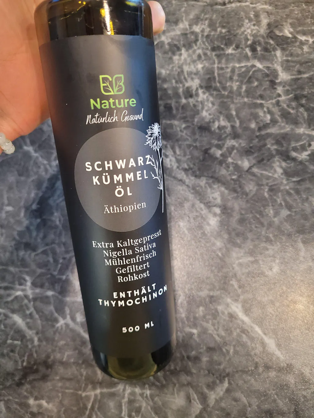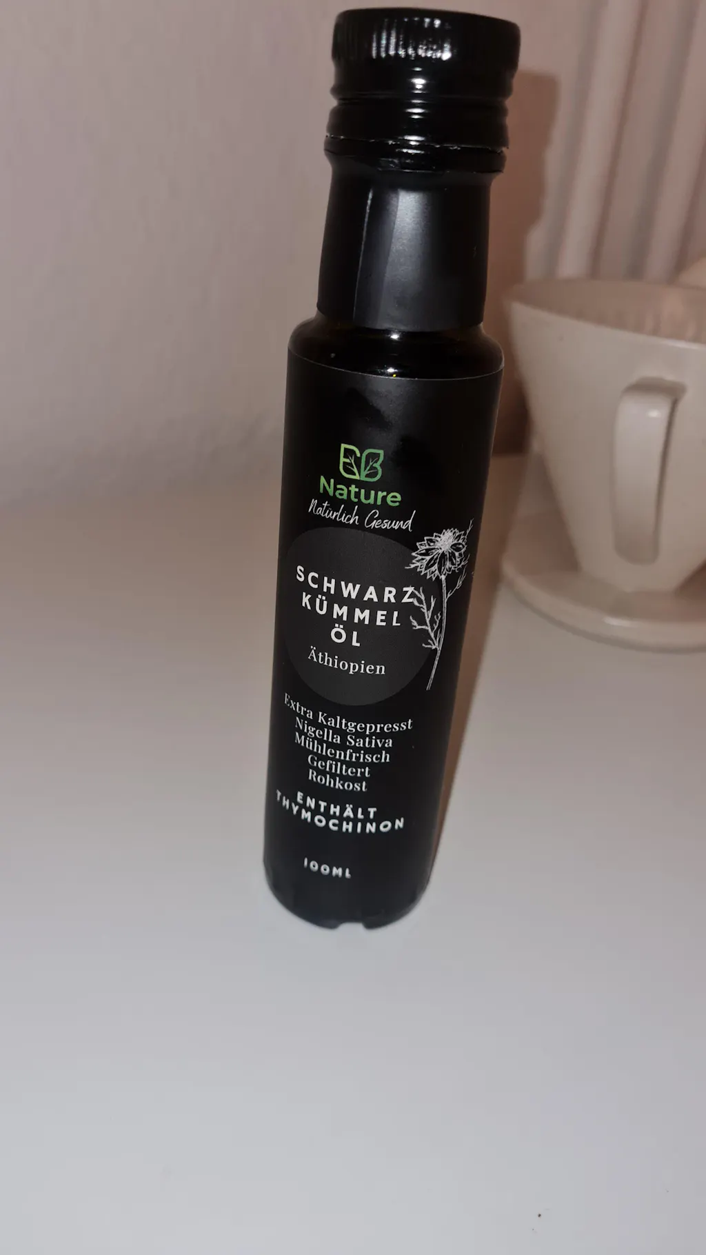 Hochwertiges Schwarzkümmelöl sollte kaltgepresst, laborgeprüft und frei von Zusatzstoffen sein. Ein hoher Thymochinongehalt (>3,1 %) wie in unserem Öl ist ein weiteres Qualitätsmerkmal. Zudem sollte es in einer dunklen Glasflasche abgefüllt sein, um die wertvollen Inhaltsstoffe zu schützen.