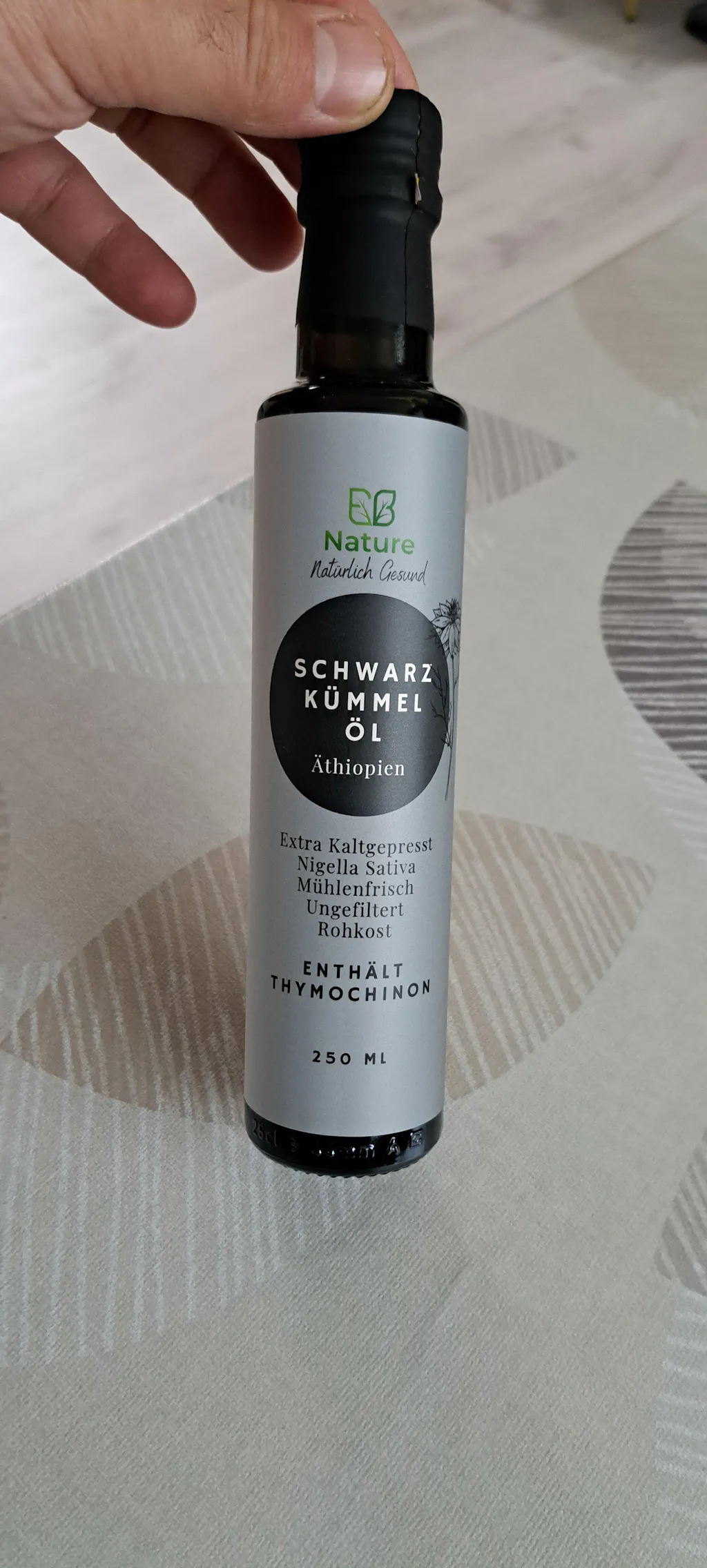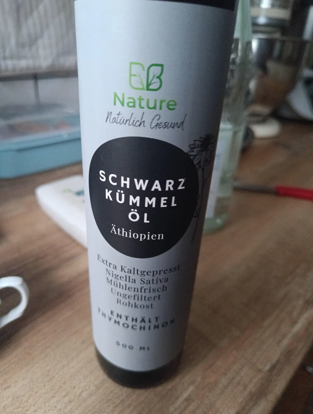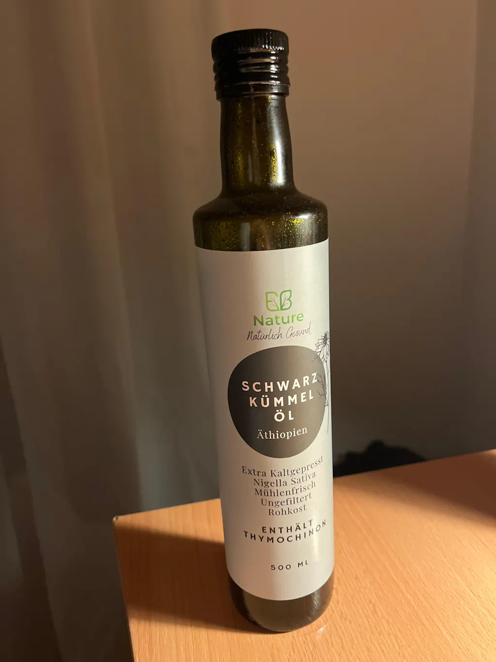 Hochwertiges Schwarzkümmelöl sollte kaltgepresst, laborgeprüft und frei von Zusatzstoffen sein. Ein hoher Thymochinongehalt (>3,1 %) wie in unserem Öl ist ein weiteres Qualitätsmerkmal. Zudem sollte es in einer dunklen Glasflasche abgefüllt sein, um die wertvollen Inhaltsstoffe zu schützen.
